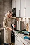 – En spännande grej med recepten är att de är skrivna både för 50 portioner och för fyra portioner, om du bara vill bjuda några vänner därhemma. Det är väl tilltagna portioner så du ska kunna ge bort eller frysa in om du behöver det – vi räknar med att vi ska få mat över, en del ska kunna få med sig en liten bytta med mat hem om det finns behov av det.