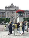 Därefter var det dags för utrikesdepartementet i Arvfurstens palats, där man bad både för den utrikesminister som ersätter Tobias Billström och viktiga frågor som krisen i Ukraina, i Mellanöstern med mera. Vid Försvarsdepartementet bad man för det svenska försvaret, för krisberedskap, och till sist samlades man på Lejonbacken vid Mynttorget och bad för regering och riksdag inför det nya arbetsåret.