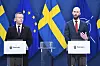 Mikael Frisell, generaldirektör för Myndigheten för samhällsskydd MSB och beredskap och ministern för civilt försvar Carl-Oskar Bohlin (M), presenterar under en pressträff nästa steg för att utöka civilplikten.
