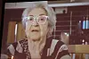 Celina Cahn berättar om Förintelsen i en tv-intervju som spelades upp under minneshögtiden i Kristet Center.