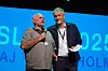 Pelle Hörnmark klev fram och bjöd upp de avgående ordförandena Lennart Edström och Christina Hellström på scenen. De hade tjänstgjort i sina roller sedan 2021 – genom kris, förändring och återuppbyggnad.
