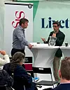 I seminariet ”Älska din nästa som dig själv” möttes Joel Halldorf och Kristdemokraternas Hans Eklind i en debatt om migrationens moraliska och retoriska dimensioner.Foto: Vit rök