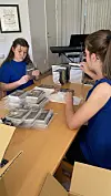 Roul och Birgit Åkesson får hjälp av tyska ungdomar i arbetet med att dela ut biblar till svenska hushåll.Foto: Brevlådemissionen