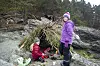 Bygg en koja! Det har vi gjort sedan urminnes tider, och allt man behöver finns i skogen. Ett tips är dock att ta med några meter snöre eller ett par liggunderlag hemifrån.Foto: Gorm Kallestad/TT