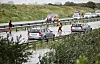 Flera bilar fastnade i vattnet på den översvämmade Västkustvägen E6 utanför Malmö 2023.Foto: Johan Nilsson/TT